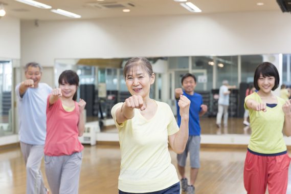 約1時間、音楽に合わせて体を動かす、リズム感あふれるエクササイズ。キックボクシングの動きを取り入れながら、有酸素運動としてしっかり汗をかけます。「運動=きつい」ではなく、「運動=楽しい」と感じたい方にぴったりです。